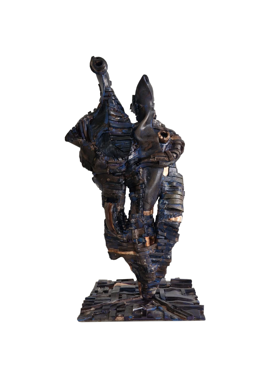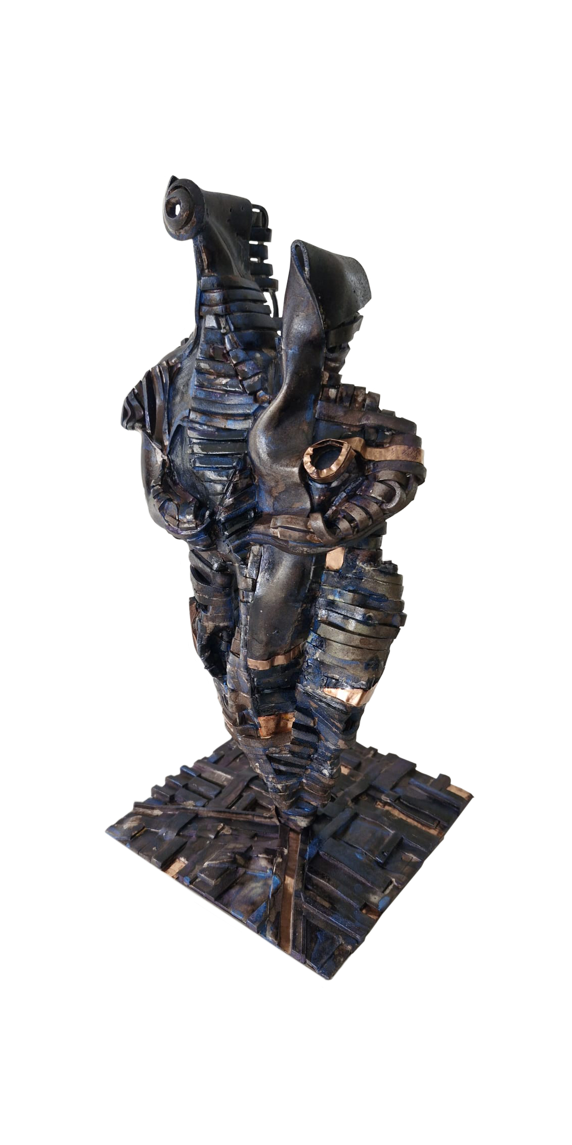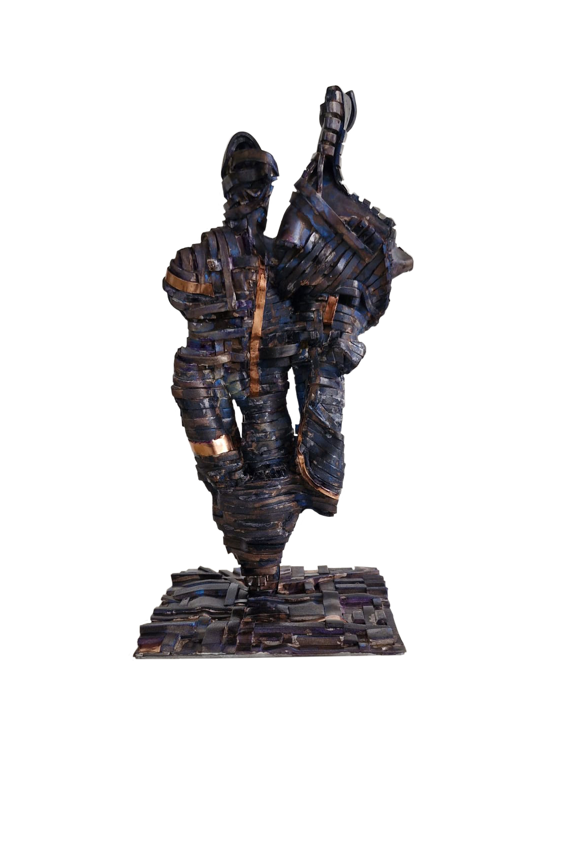 "Both of Us" is a symbolic embrace that revitalizes the legend of "one soul in two bodies"—one of the most ancient myths of existence—within the mystical depths of purple and navy blue. The abstract male and female figures, intertwining to blur the boundaries of their forms, represent that sacred and unbreakable bond where duality transforms into unity. The chameleon-like shifting of colors across the surface with the play of light symbolizes the dynamic nature of this connection; an emotional universe that is constantly changing and transforming, yet always preserving its essence. This work serves as an artistic manifesto of a timeless integration, reborn with every glance through the dance of light and shadow.