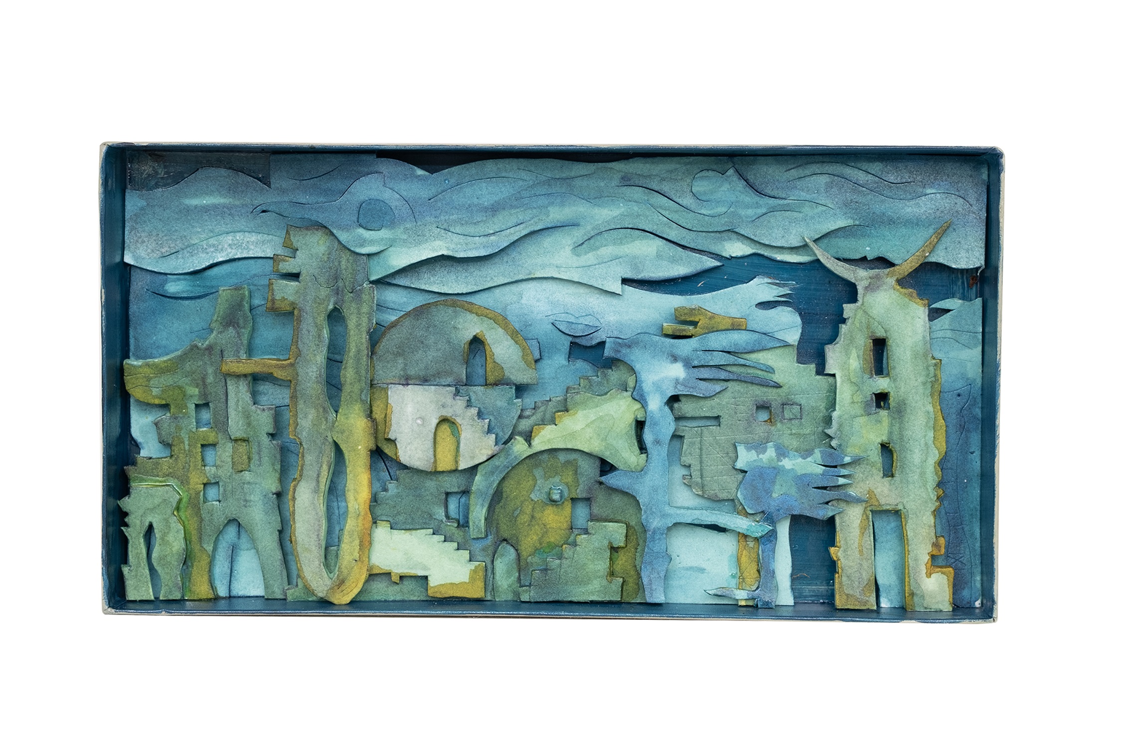 "Indigo Dreams" is a visual epic that gives voice to silence within that mysterious twilight where night and dream intersect. While the lip figure emerging from the clouds represents an ancient song or a cosmic secret whispered over the city, the humanoid architectural structures rising within this deep blue suggest that the city is woven not just of stone, but of memories and spirits. In this azure labyrinth of stairs, doors, and interlocking spaces, the abstract birds and metamorphosed mythical creatures gliding across the surface symbolize the yearning for freedom arising from the depths of consciousness. Each layer invites the viewer on a fairy-tale inner journey where the boundaries between reality and imagination dissolve within the melancholic yet serene embrace of indigo.