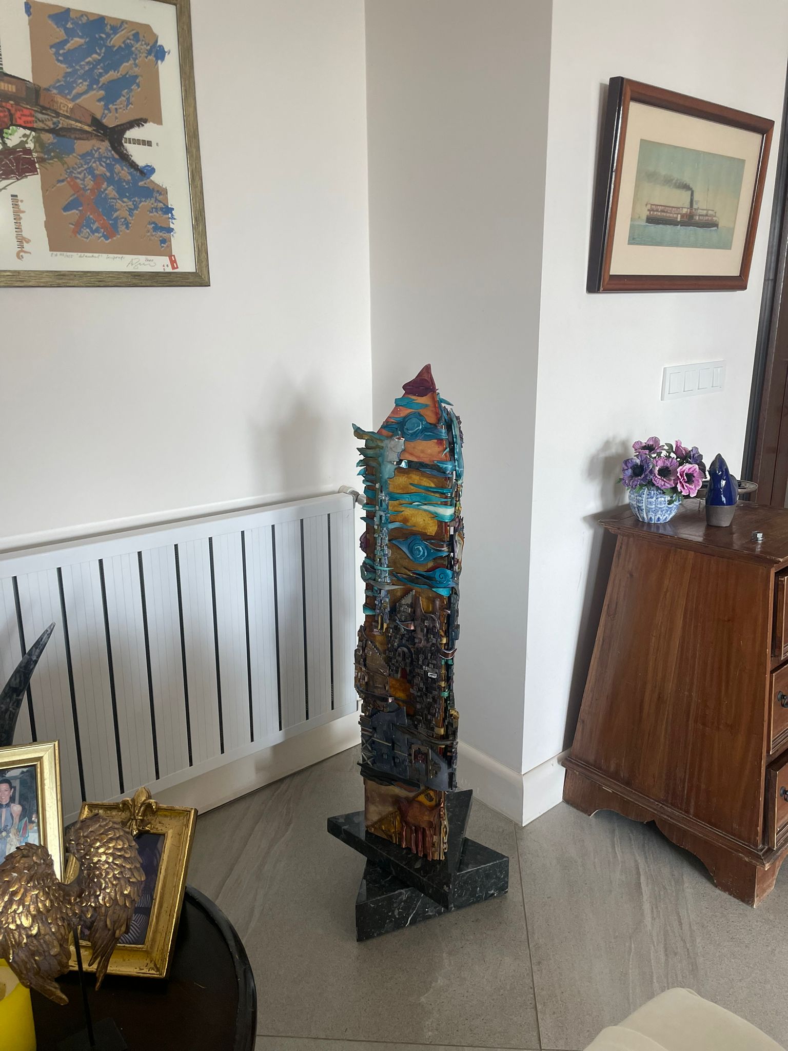 ''Morpheus'', 29x5x100 cm., etilen vinil asetat, mermer, bakır, el boyaması, 2024