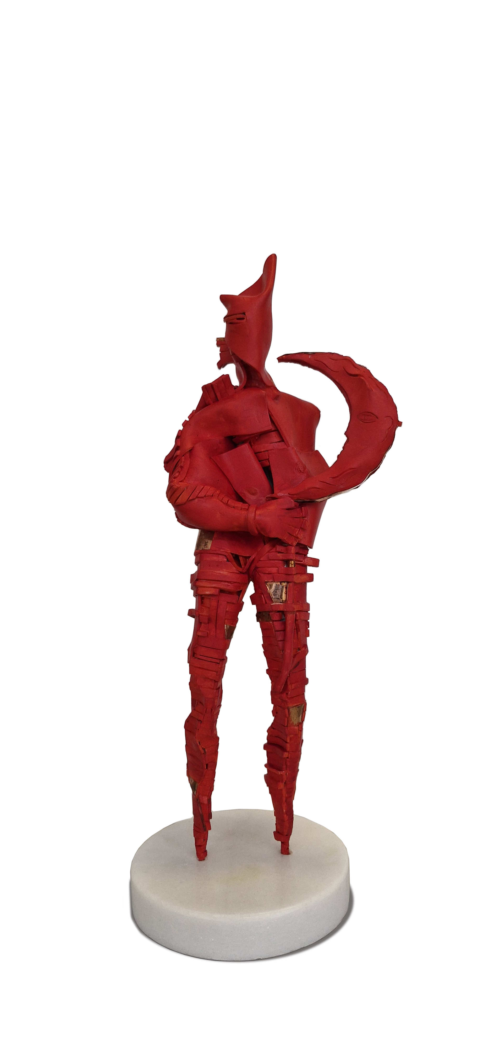 Selene, tutkunun ve yaşamın sembolü olan kırmızı monokrom dokusunu, ayın soğuk ışığıyla buluşturan mistik bir anlatı sunuyor. Elinde tuttuğu ay ile astrolojinin döngüsel gücünü ve gece gökyüzünün hükümdarlığını simgeleyen bu figür, üzerindeki altın boya dokunuşlarıyla tinsel bir yücelik kazanıyor. Kırmızının dramatik derinliği içinde parlayan altın detaylar, antik mitolojinin ay tanrıçasını hem dünyevi bir güç hem de göksel bir rehber olarak yeniden konumlandırıyor. Bu heykel, gökyüzündeki o ebedi ışığın yeryüzündeki bir yansıması gibi, izleyiciyi yıldızların ve mitlerin gizemli birleştiği o büyüleyici noktaya davet ediyor.
